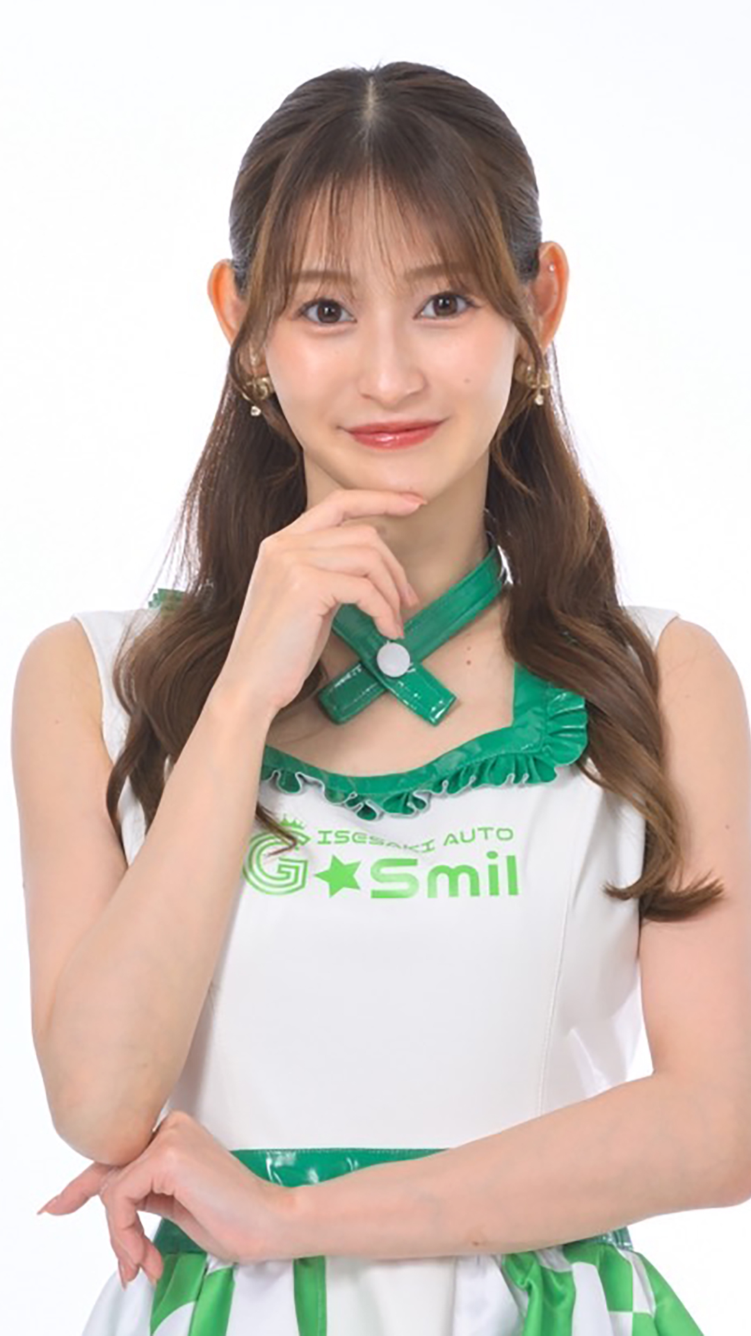 | メッセージ | 皆さん改めまして6号車担当になりました G⭐︎Smil2025新メンバーの河村澪です! グリーンの衣装に身を包まれ皆さんの前に立つ瞬間は新鮮な気持ちとワクワクと緊張でいっぱいです。初めて目の前でレースを見たときは興奮が止まりませんでした!! まだまだ知らないことだらけのオートレースですがG⭐︎Smilの先輩方に色々なことを教わりながら皆さんと一緒に全力で伊勢崎オートレースを盛り上げていきますので応援をお願いします!! そして是非この一年で河村澪を覚えていってくださいね♡ |